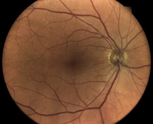 - Bild des Augenhintergrunds: Für das Netzhaut-Screening nehmen wir hochauflösende Bilder deines zentralen Augenhintergrunds auf. So können mögliche Veränderungen oder Auffälligkeiten an der Netzhaut frühzeitig erkannt und dokumentiert werden.